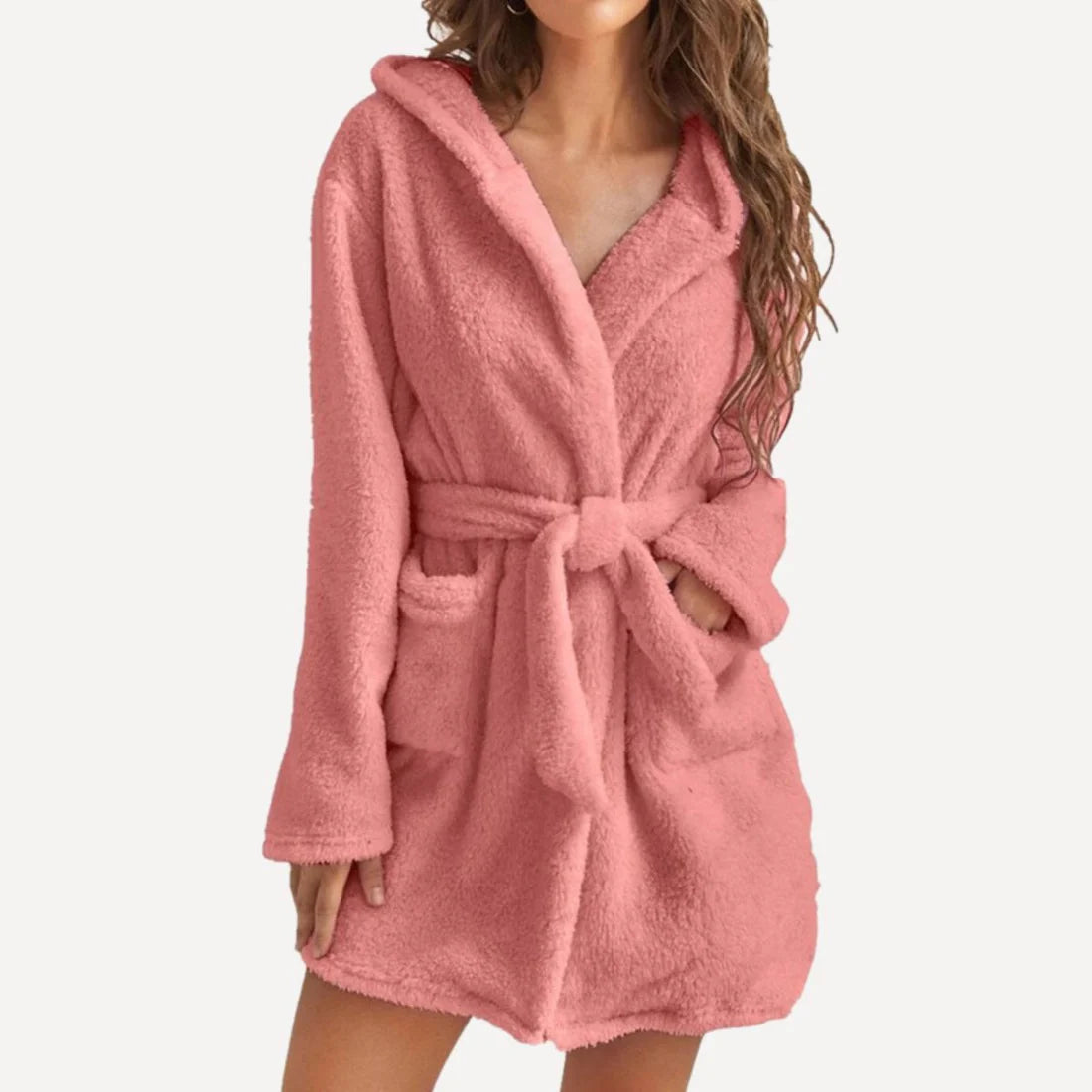 Peignoir à capuche moelleux pour femme